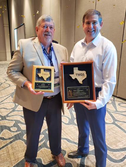 The Texas Water Conservation Association awarded Glenn Clingenpeel, technical services and basin planning executive manager, with the TWCA President’s Award at its annual meeting in March. The award recognized Clingenpeel for his outstanding dedication, service and contributions to the Association and Texas Water Resources Management.