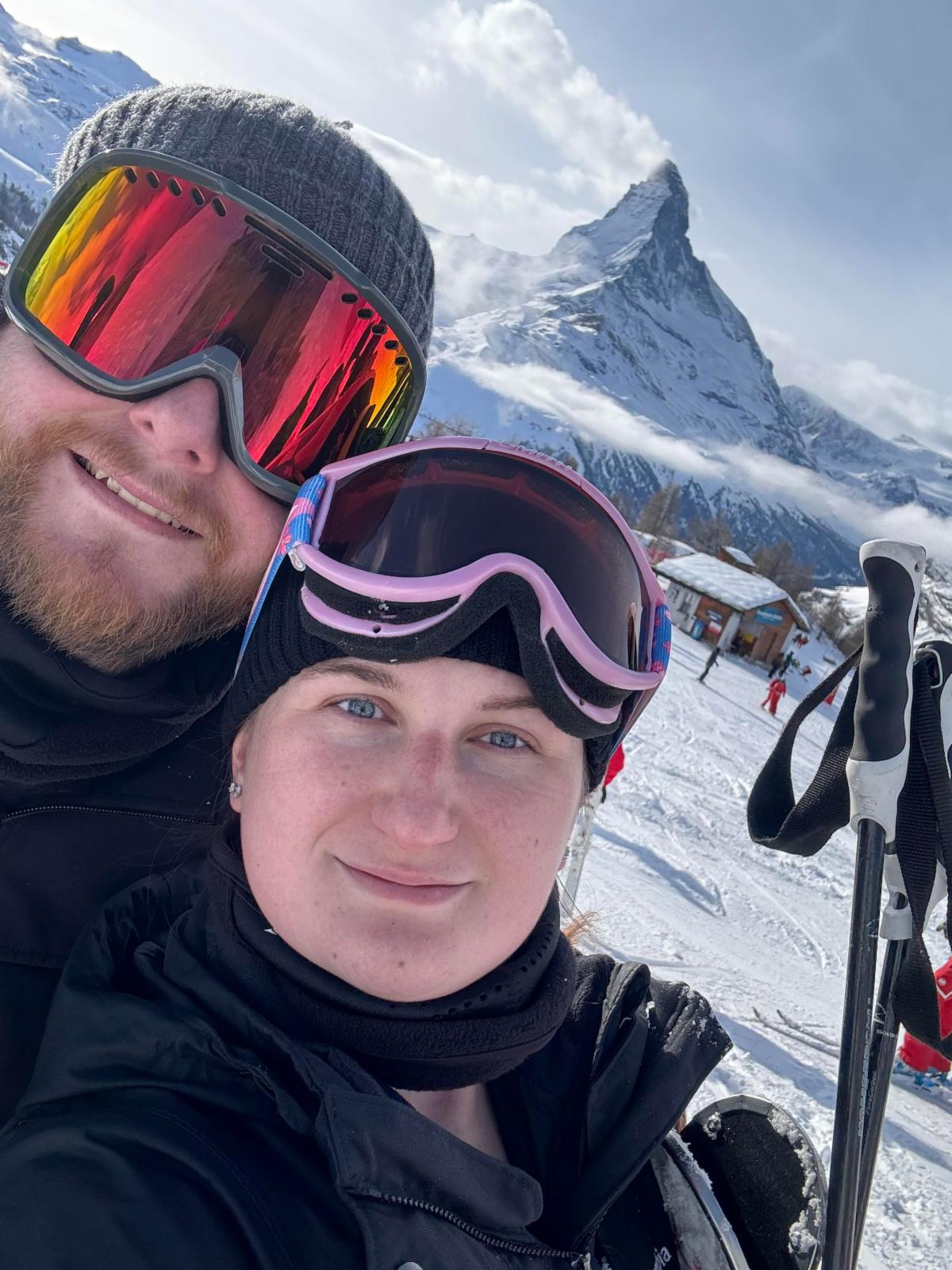 Matthew and Brandi Whitlock, son and daughter-in-law of Mike Whitlock and Nancy Whitlock, land records research specialist, recently honeymooned in Switzerland. They went skiing, sledding and paragliding in Interlaken, then enjoyed a week skiing in Zermatt, home of the famous Matterhorn. | |